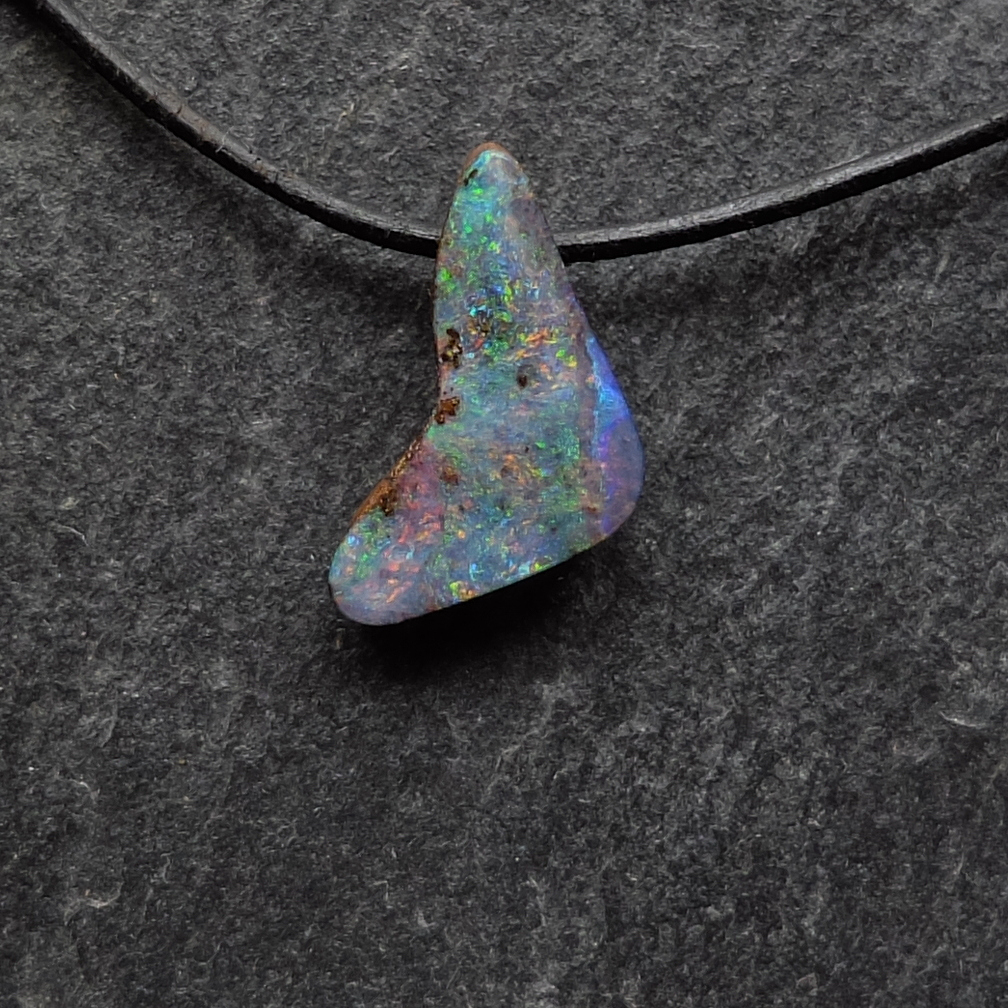Bunt kommt dieser Stein daher...Zu tragen am Lederband...