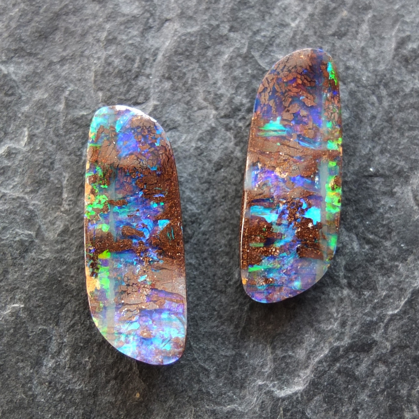 Ein wunderschönes Paar Opale, dass bei Bewegung zum Leben erwacht. Als Ohrhänger verarbeitet ein Traum. Das Gewicht bezieht sich auf beide Steine.