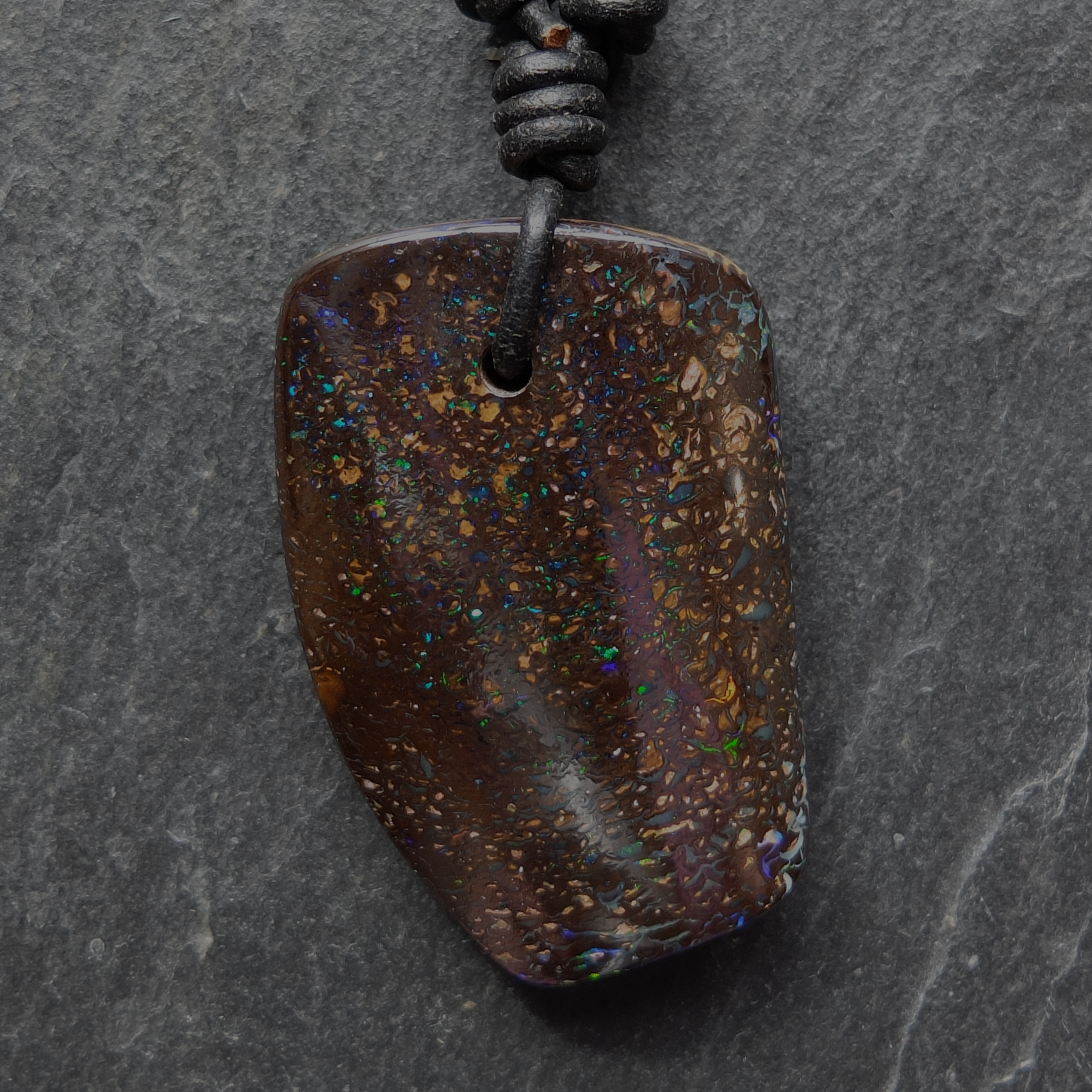 Gleichmäßig gepunktete Hülle einer Opalnuss...ein großer, kraftvoller Stein...zu tragen am Lederband.