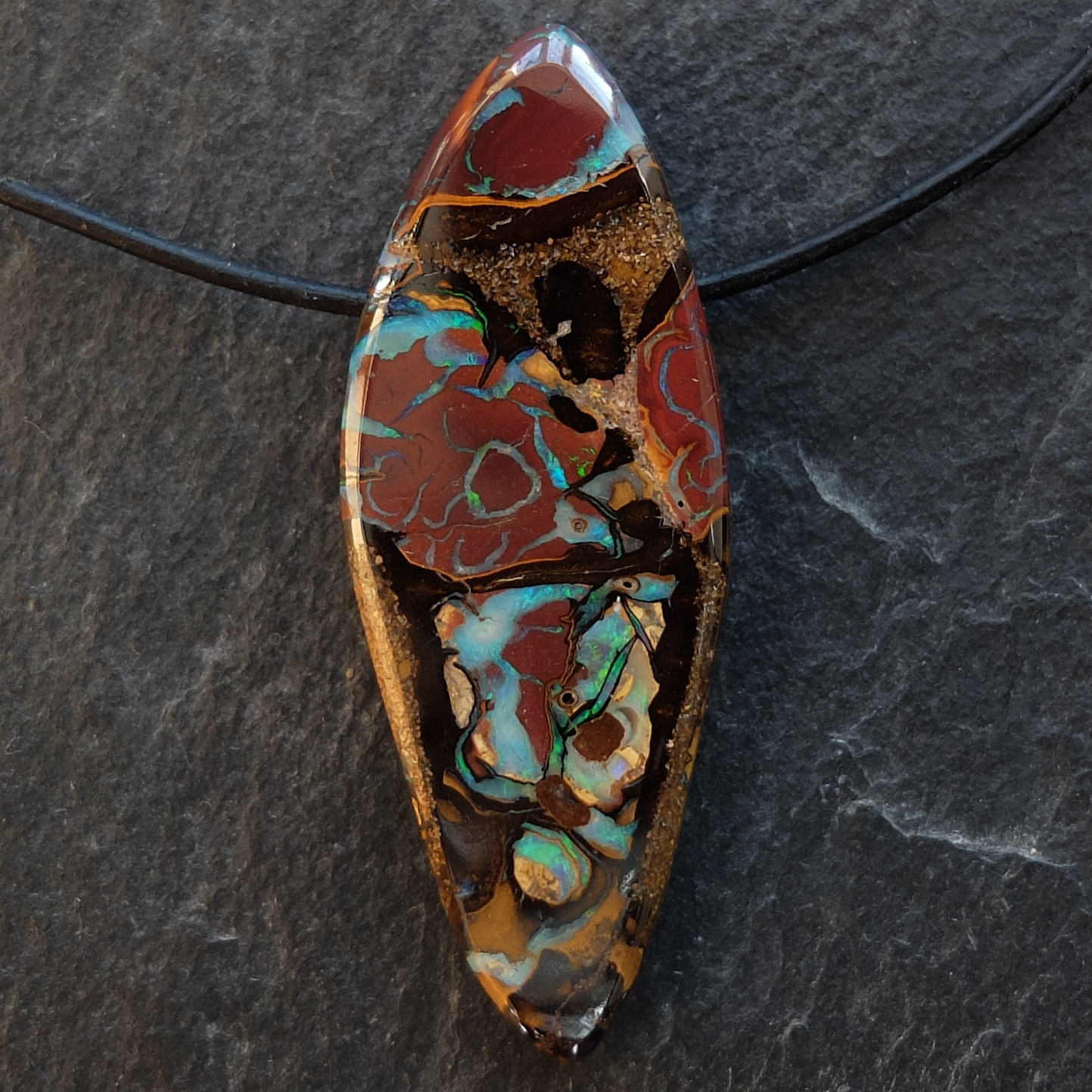 Opalnüsschen mit grün, dicht gedrängt....zu tragen am Lederband
