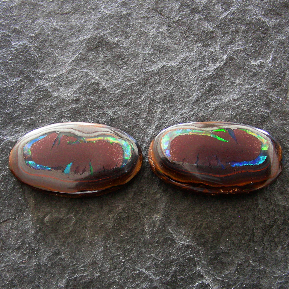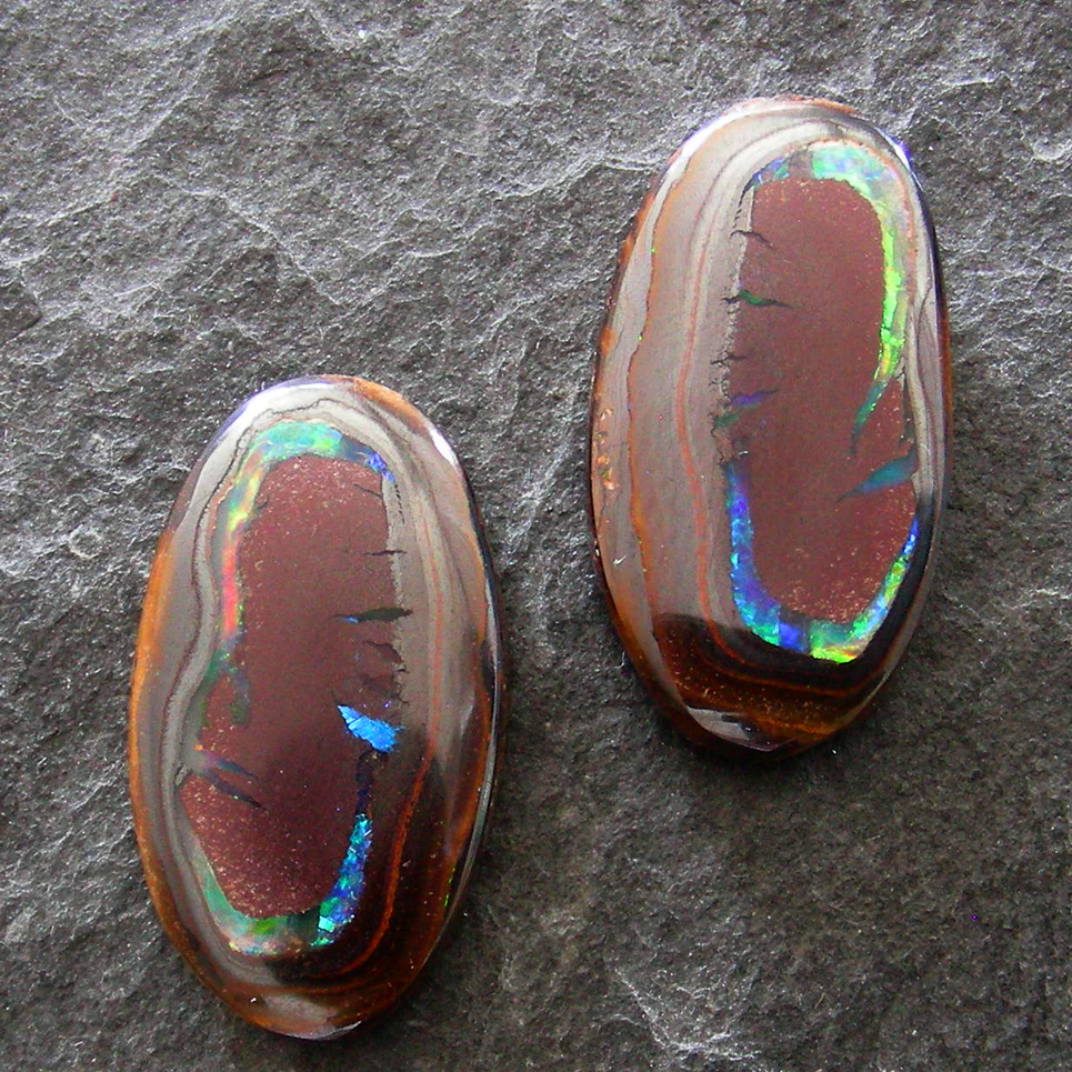 Ein Nusspaar aus Koroit. Die Opallinien durchlaufen das Spektrum des Regenbogens...