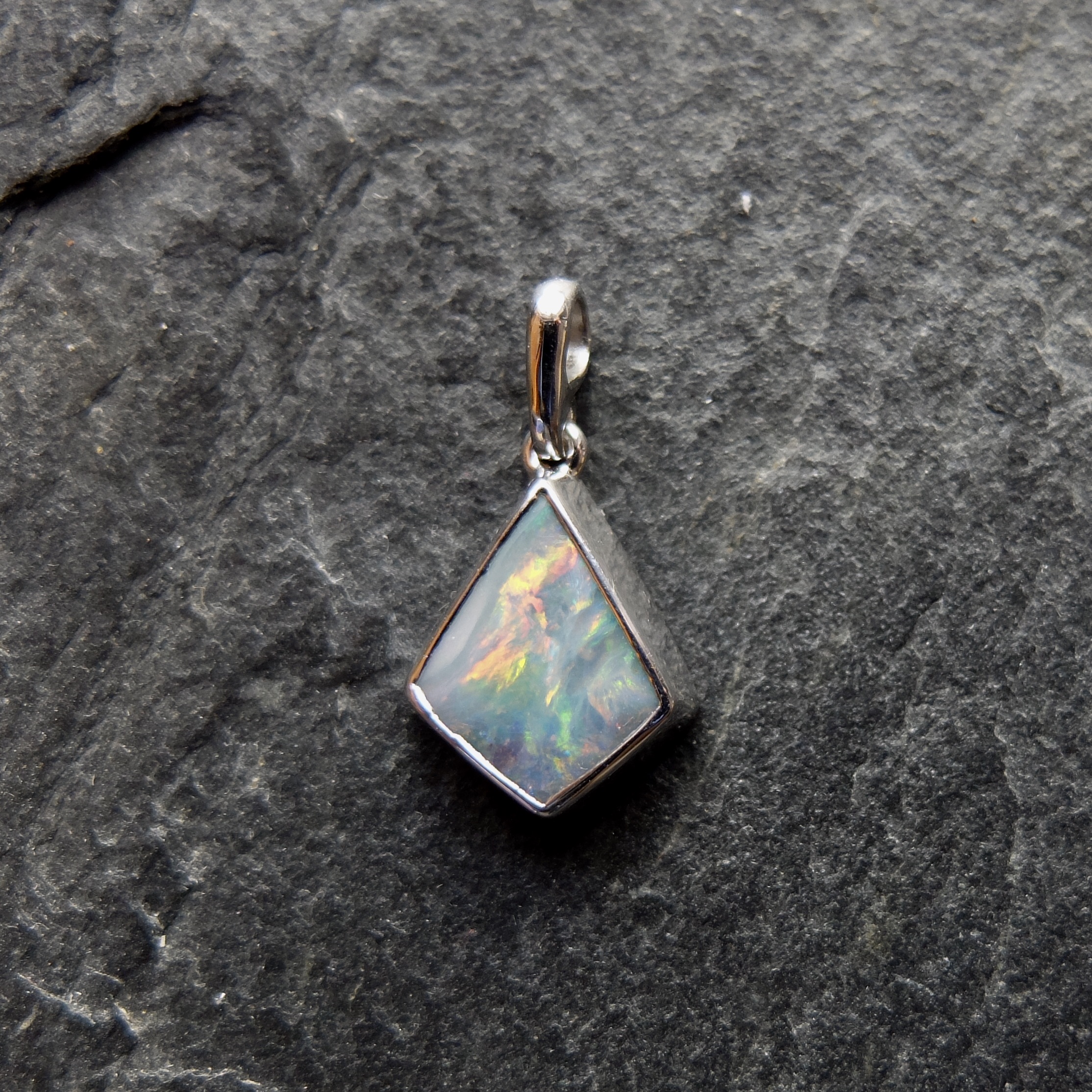 Anhänger mit natürlichem, unbehandelten Boulderopal und Silber AG925. Das Silber wurde rhodiniert um einer Dunkelfärbung vorzubeugen. Es ist eine individuelle Goldschmiedearbeit mit hohen Ansprüchen an die Verarbeitung. Der Stein wurde ordentlich gefasst und nicht eingeklebt. Wunderschön auch am Lederband...