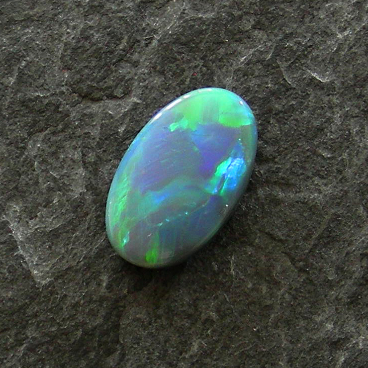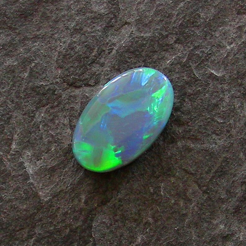 Breite Flächen wechseln bei Bewegung die Farbe von Grün zu Gelbgrün und leichtem Blau. Ein schöner Ringstein, der die Bewegung liebt...Auf der schwarzen Rückseite ein paar kleinere Toneinschlüsse, die aber nicht stören sollten...